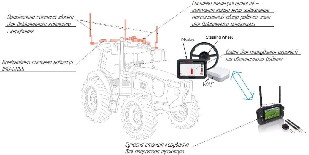 Телеприсутність і камери — трактор бачить поле через комплекс камер, а оператор бачить його у центрі керування на великому екрані. Зв’язок підтримується через цифрові й аналогові канали, навіть там, де сигнал нестабільний